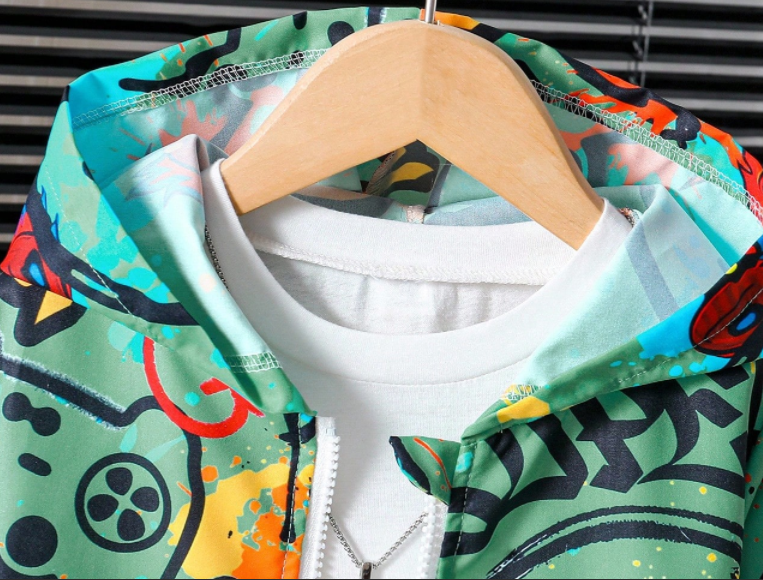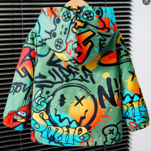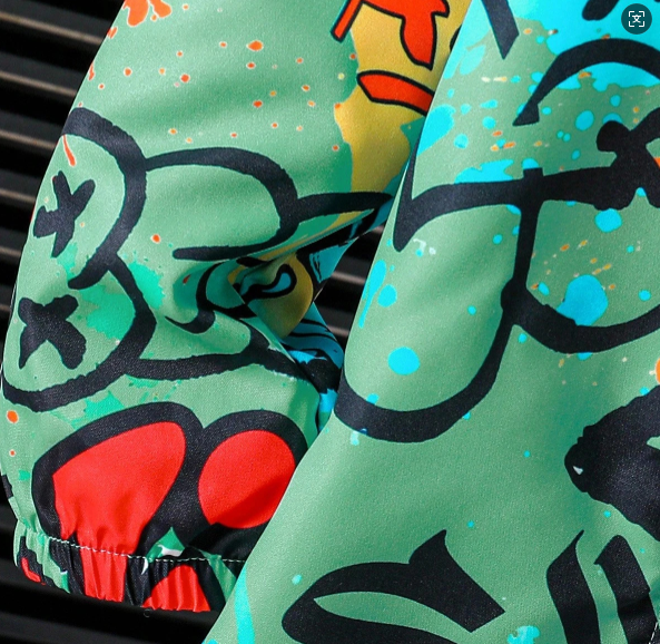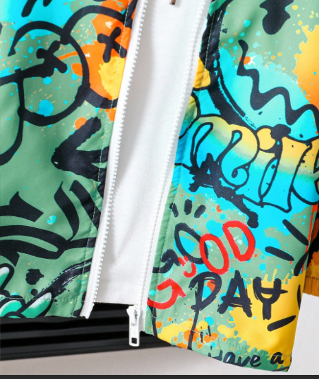 Boy Casual Minimalist Street Graffiti Print Long Sleeve Jacket, Fashion Casual Design Windbreaker
